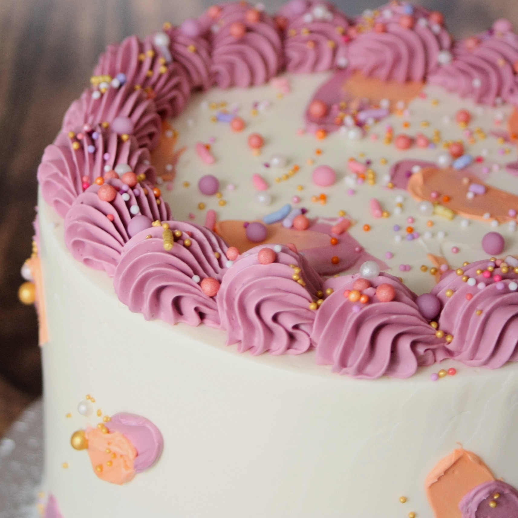 De basis van de taart bestaat uit cake, crème en een lekkere vulling. Alle cakes worden afgesmeerd met botercrème en gedecoreerd met sprinkles, botercrème en naar wens een drip.
